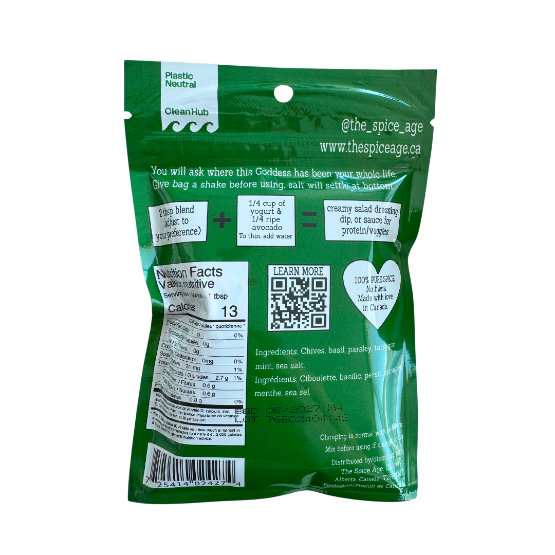 Ingredients: Chives, basil, parsley, tarragon, mint, sea salt & maple sugar.